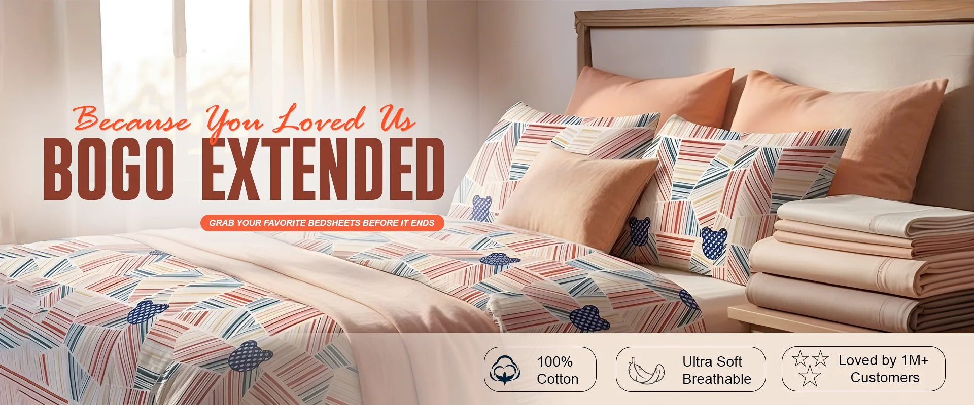 From luxurious Cotton Bedsheet (बेडशीट) in Flat and Fitted styles to all season /AC Comforters, Kids bedding, Pillow covers, Duvet covers (रजाई कवर), Satin Sheets, 7D Bedsheets, Mattress Protectors, and Blackout Curtains. We also offer printed & customized Coffee Mugs.