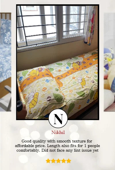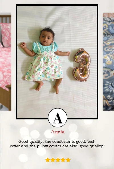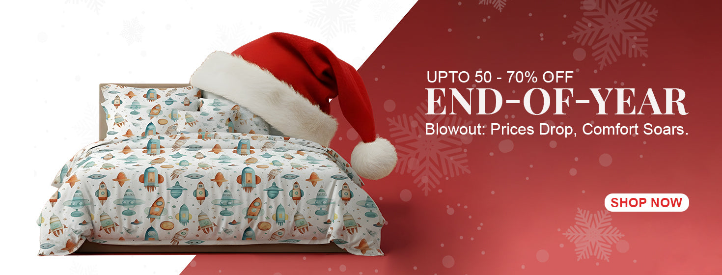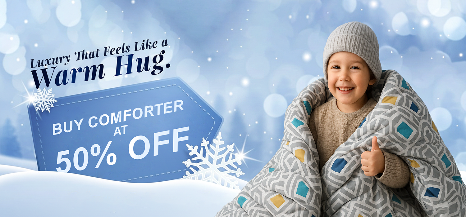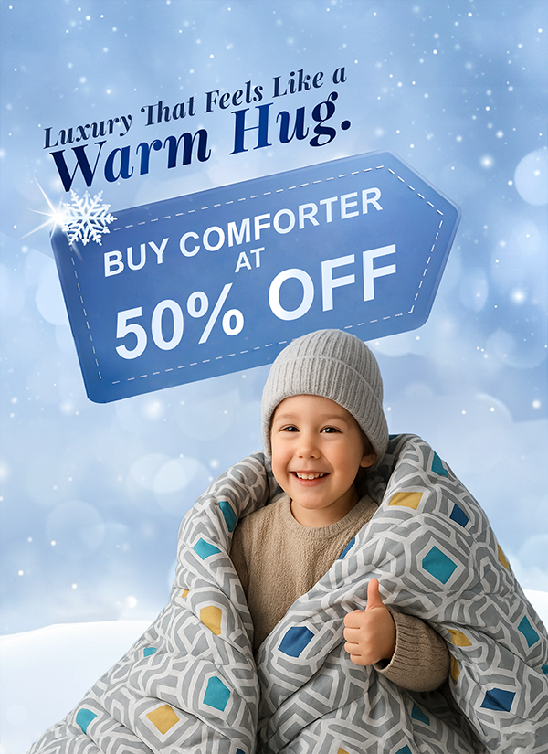 From luxurious Cotton Bedsheet (बेडशीट) in Flat and Fitted styles to all season /AC Comforters, Kids bedding, Pillow covers, Duvet covers (रजाई कवर), Satin Sheets, Mattress Protectors, and Blackout Curtains. We also offer printed & customized Coffee Mugs.