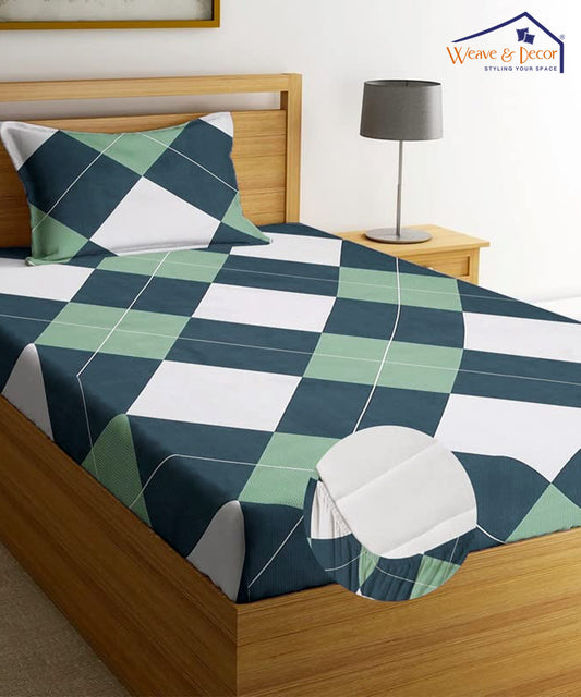 Multi Color King Fitted Bedsheet With 2 Pillow Covers