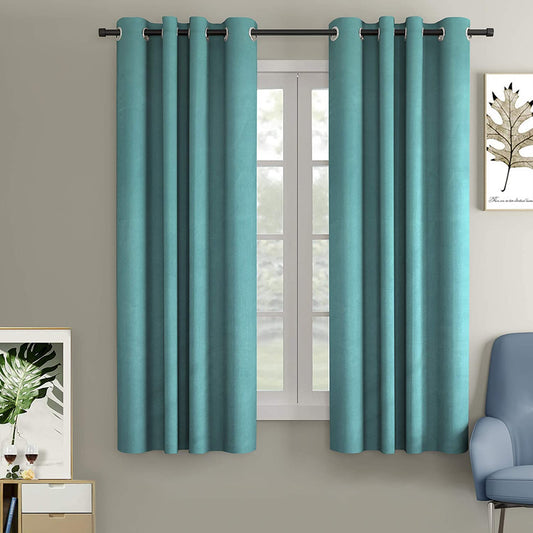 Blackout Curtain (Width- 4 Feet- Aqua ) Pack of 2 Piece