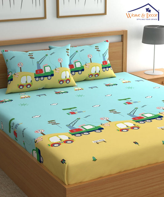 Toy Car King Size Bedsheet With 2 Pillow Covers