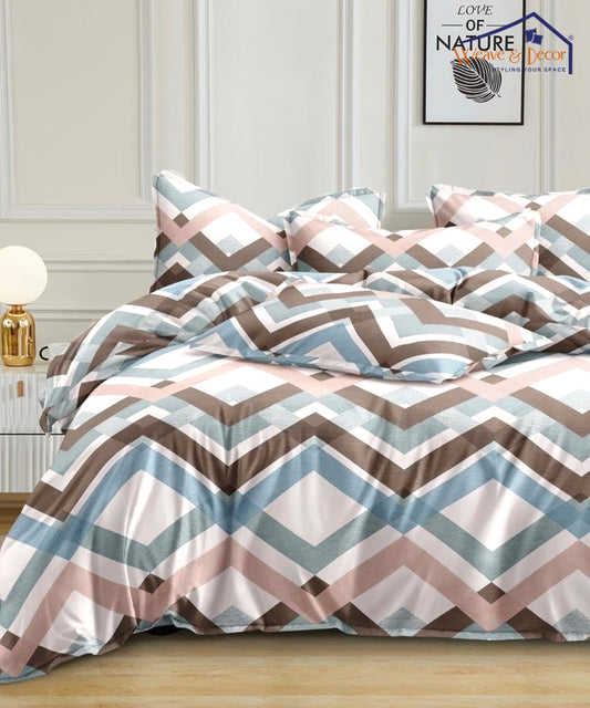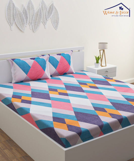 Multi Color Triangles King Size Bedsheet With 2 Pillow Cover