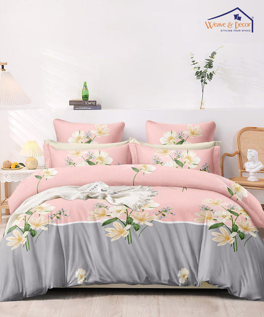 Pink Floral King Size Bedsheet With 2 Pillow Covers