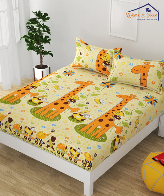Animal Print Queen Fitted Bedsheet With 2 Pillow Covers