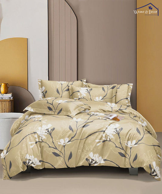 Green and Beige Floral Queen Fitted Bedsheet With 2 Pillow Covers