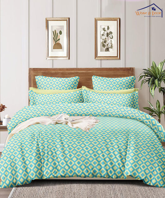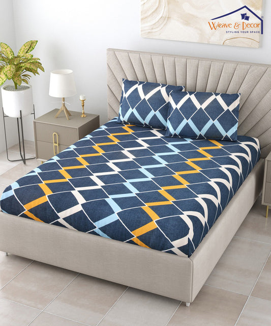 Blue Geometric Queen Fitted Bedsheet With 2 Pillow Covers