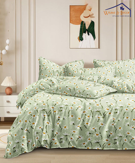 Daisy Sky Queen Fitted Bedsheet With 2 Pillow Covers