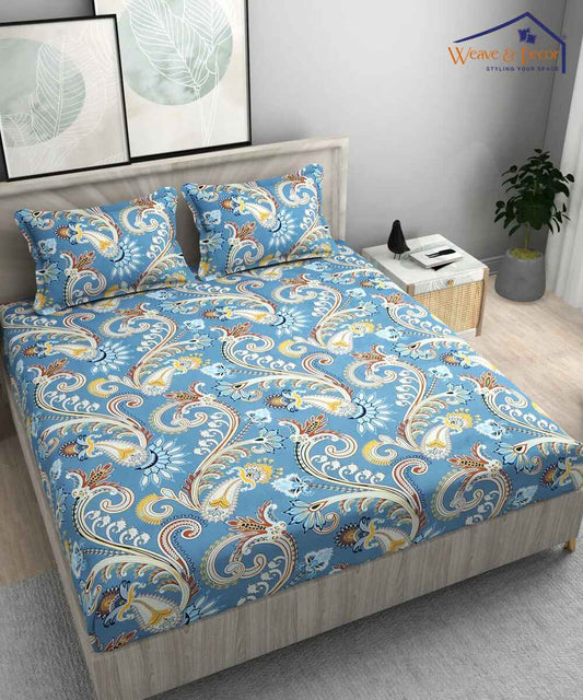 Blue Floral Single Fitted Bedsheet With 1 Pillow Cover