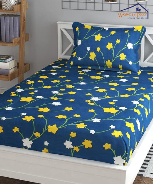 Yellow Floral Single Fitted Bedsheet With 1 Pillow Cover