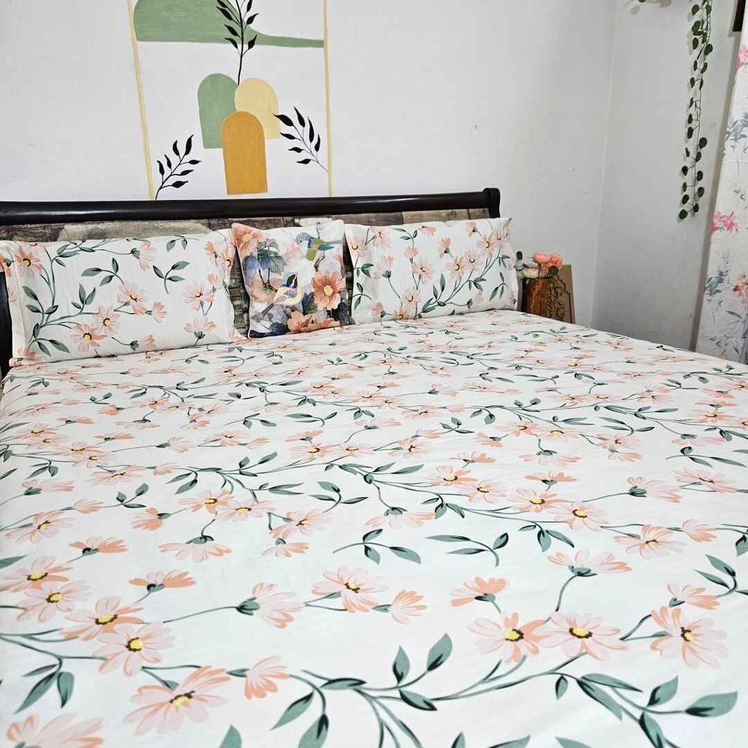I absolutely love my white floral pattern bed sheet! It adds a fresh, elegant touch to my room.