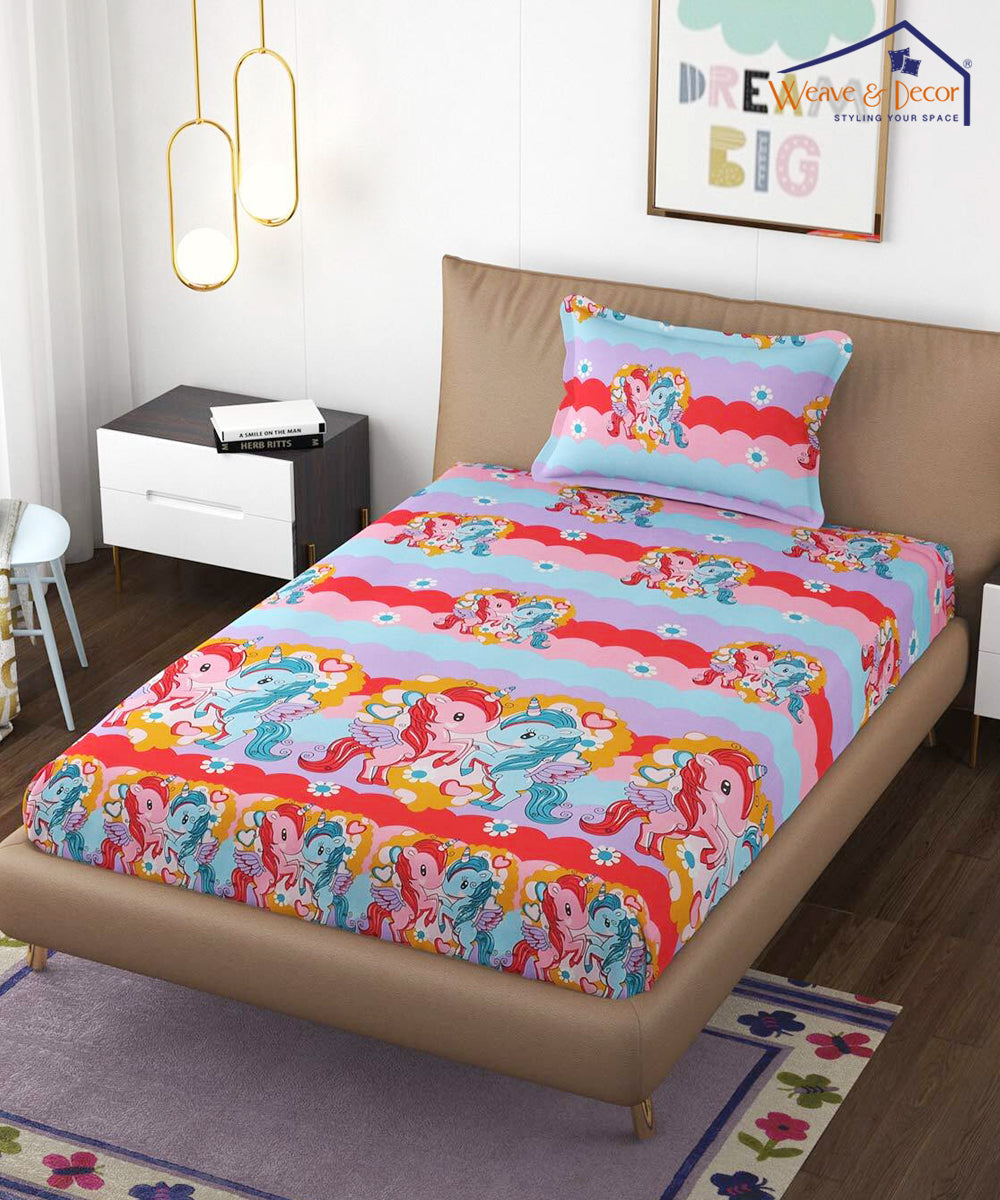 Cute Kids Single Bedsheet With 1 Pillow Cover