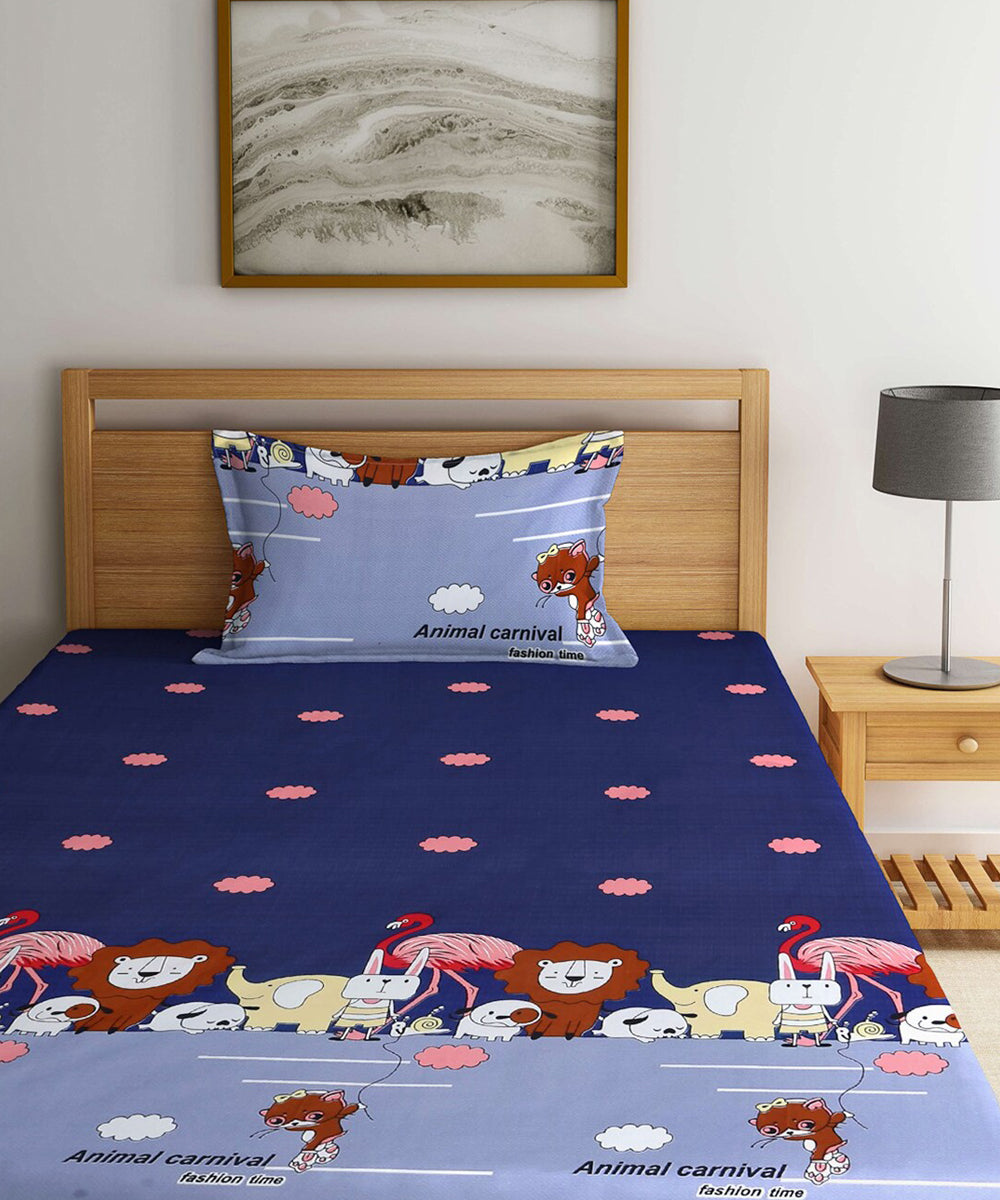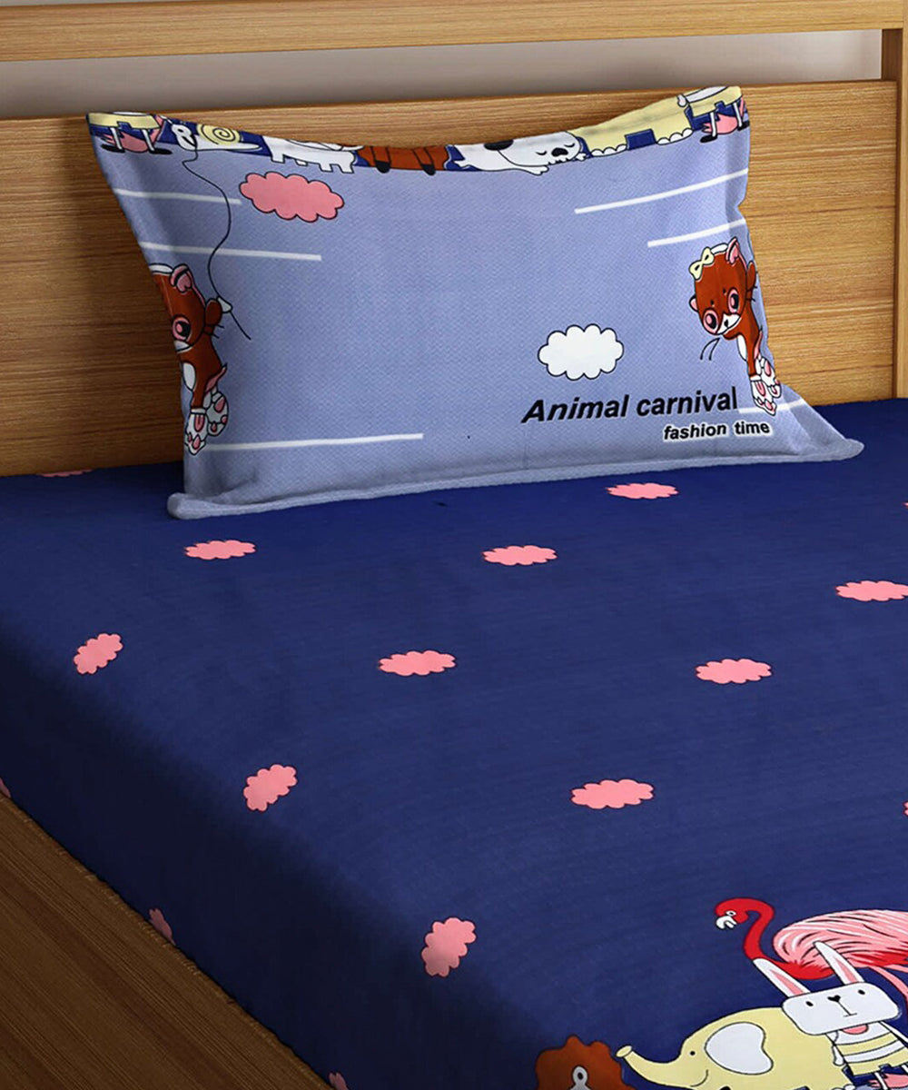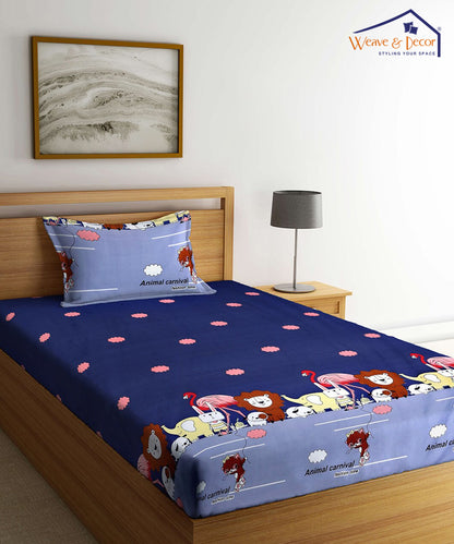 Animal Carnival Kids Single Bedsheet With 1 Pillow Cover