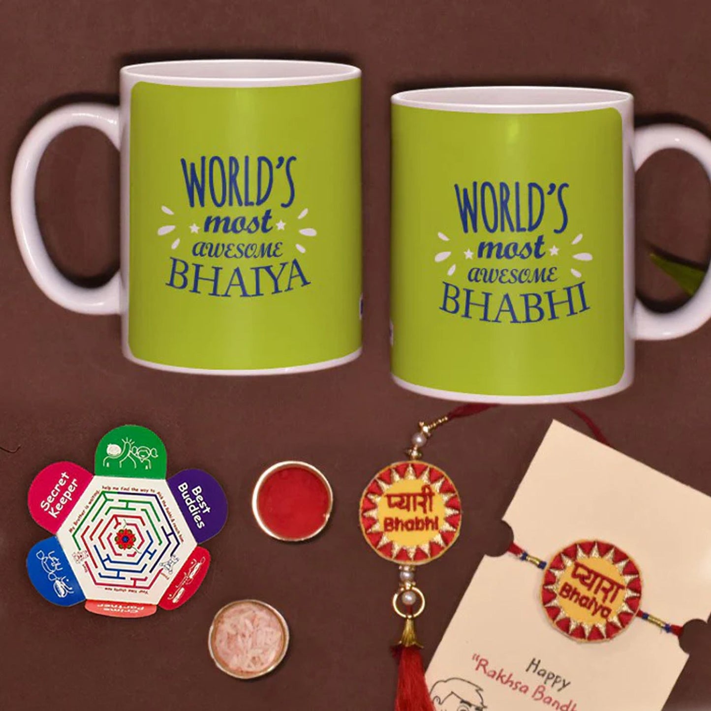 Awesome Bhaiya & Bhabhi Mug Set with 2 Rakhi