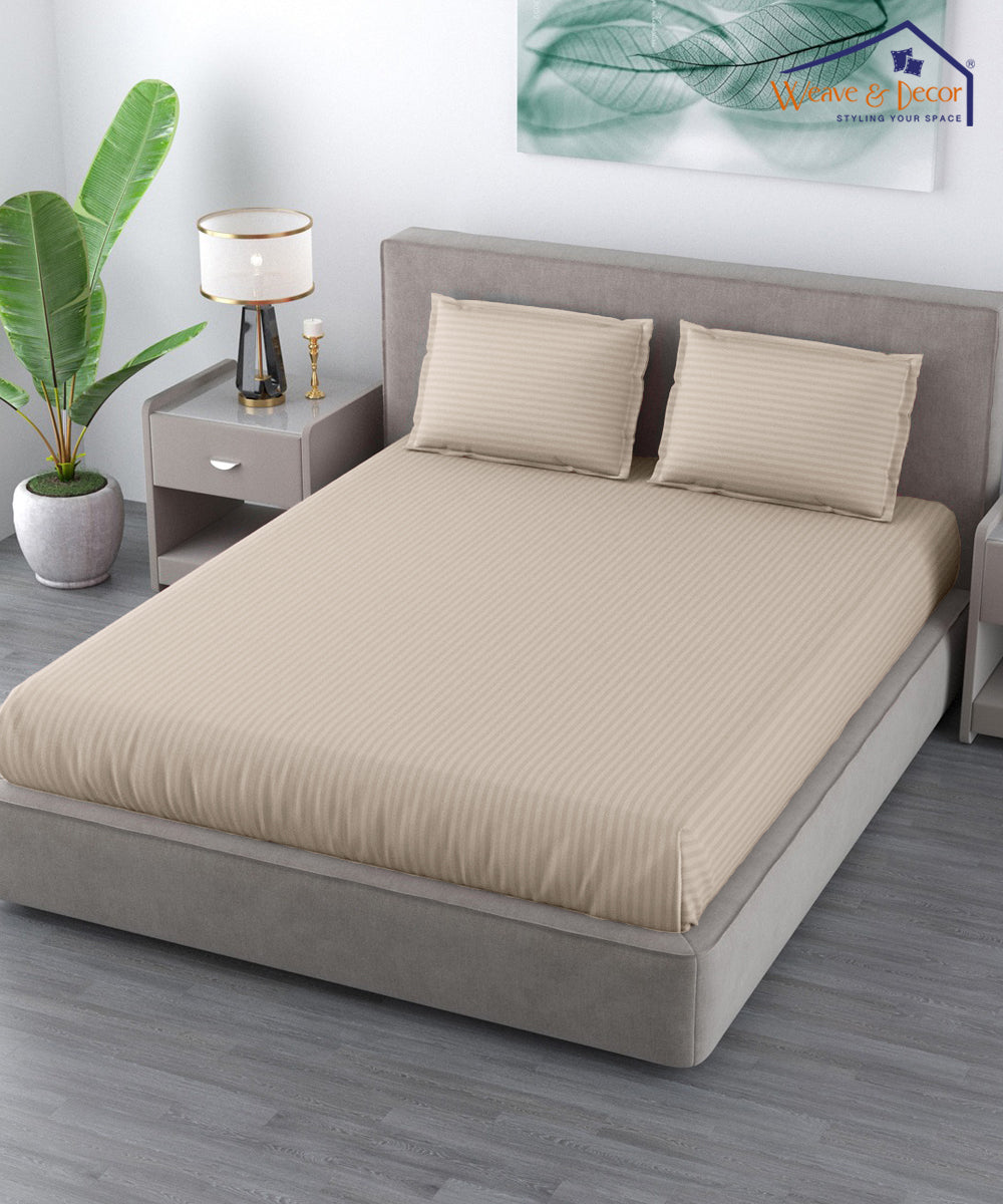 Beige King fitted Bedsheet With 2 Pillow Covers