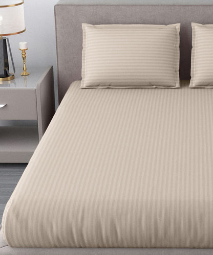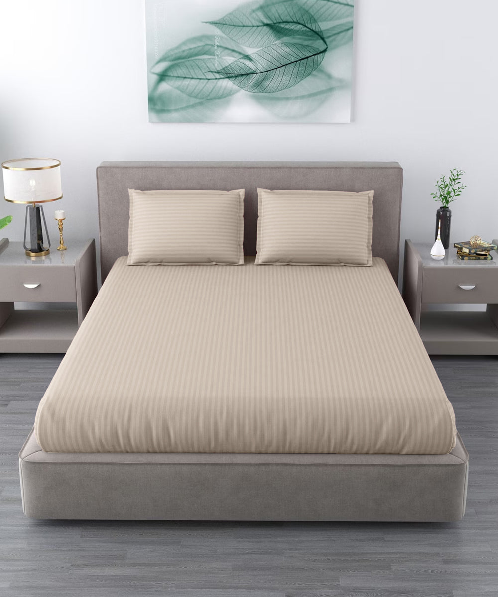 Beige Queen Fitted Bedsheet With 2 Pillow Covers