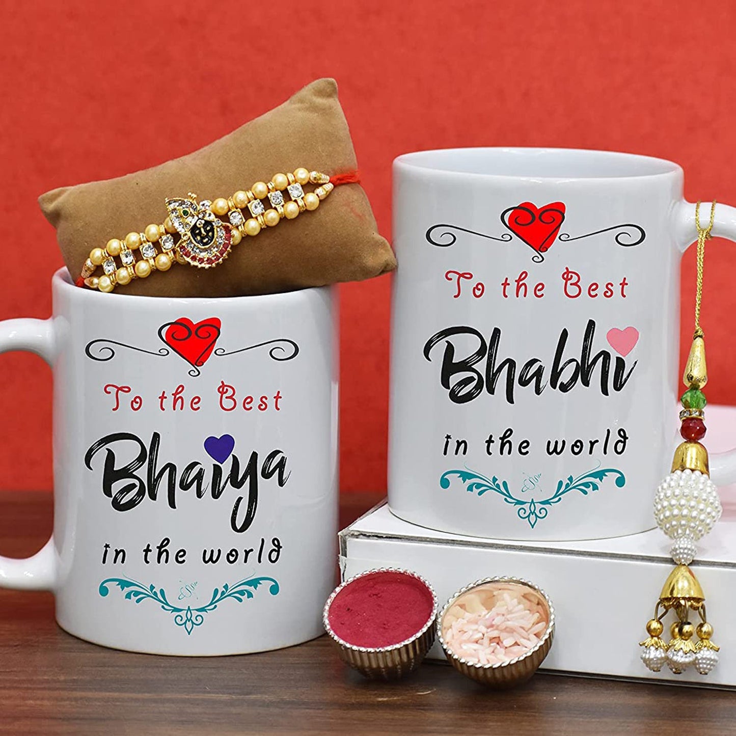 Best Bhaiya Bhabhi Ever Mug Set with 2 Rakhi