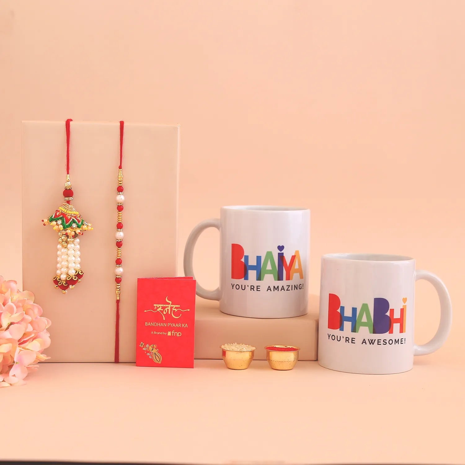 Bhaiya Bhabhi Mug Set with 2 Rakhi