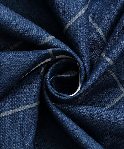 Blue Checks Flat Double Bedsheet With 2 Pillow Cover