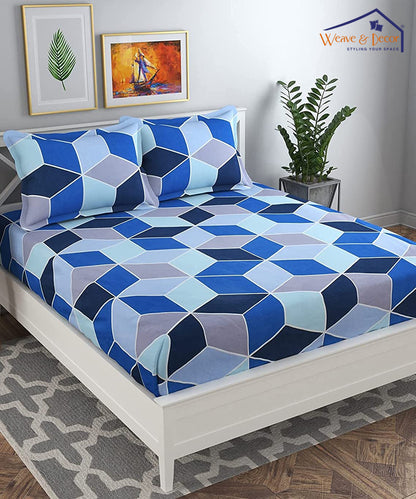 Blue Geometric Fitted Bedsheet With Pillow Cover