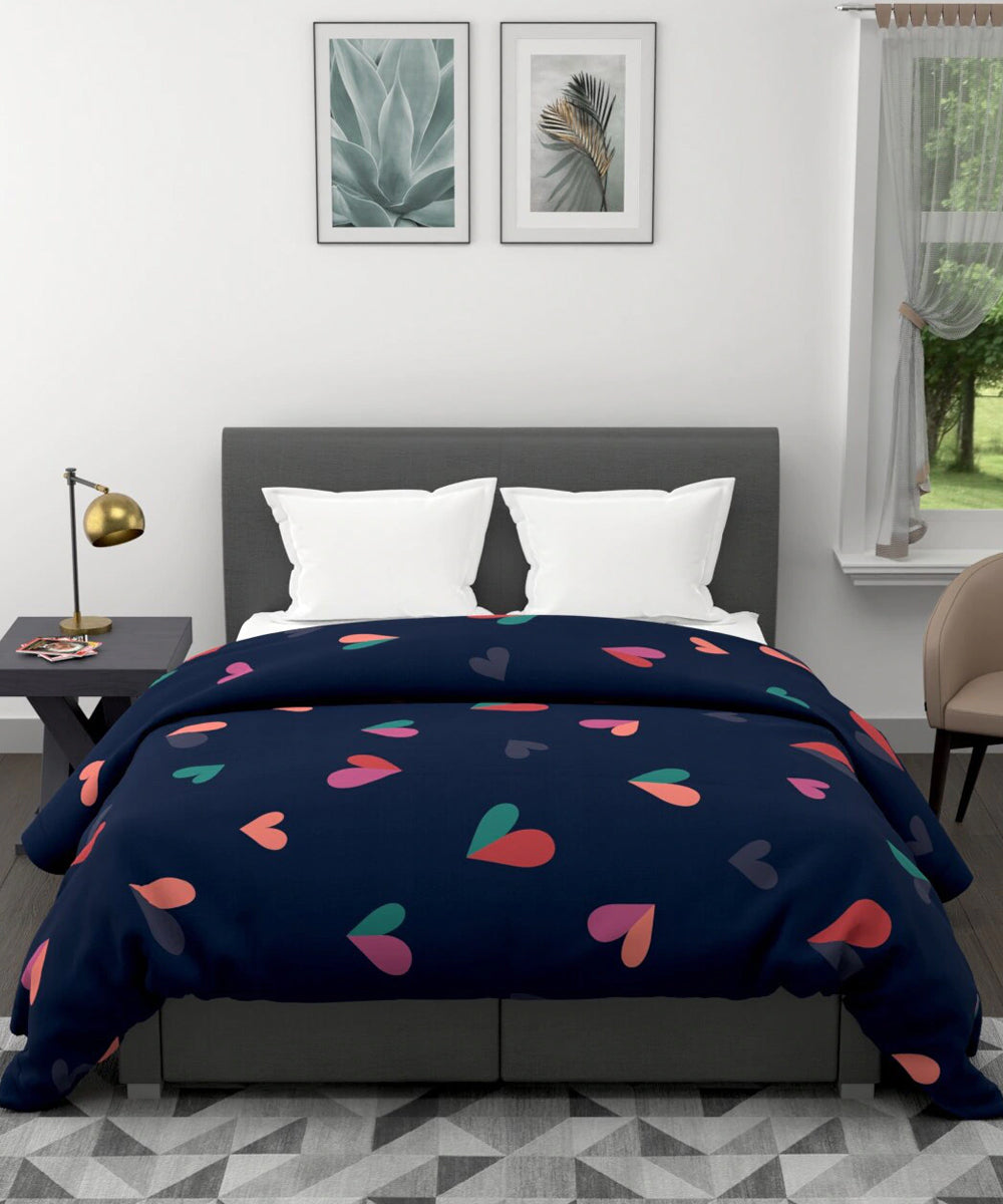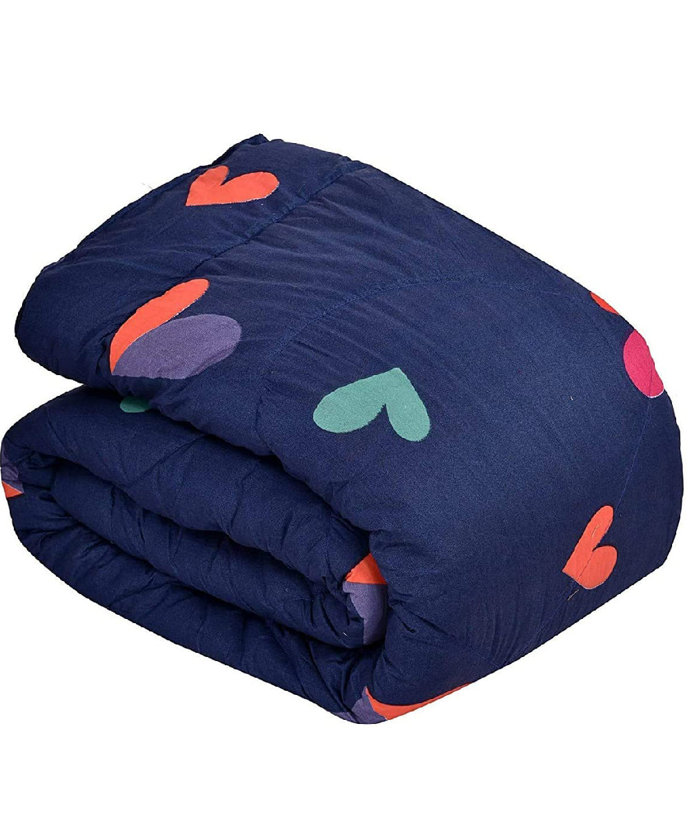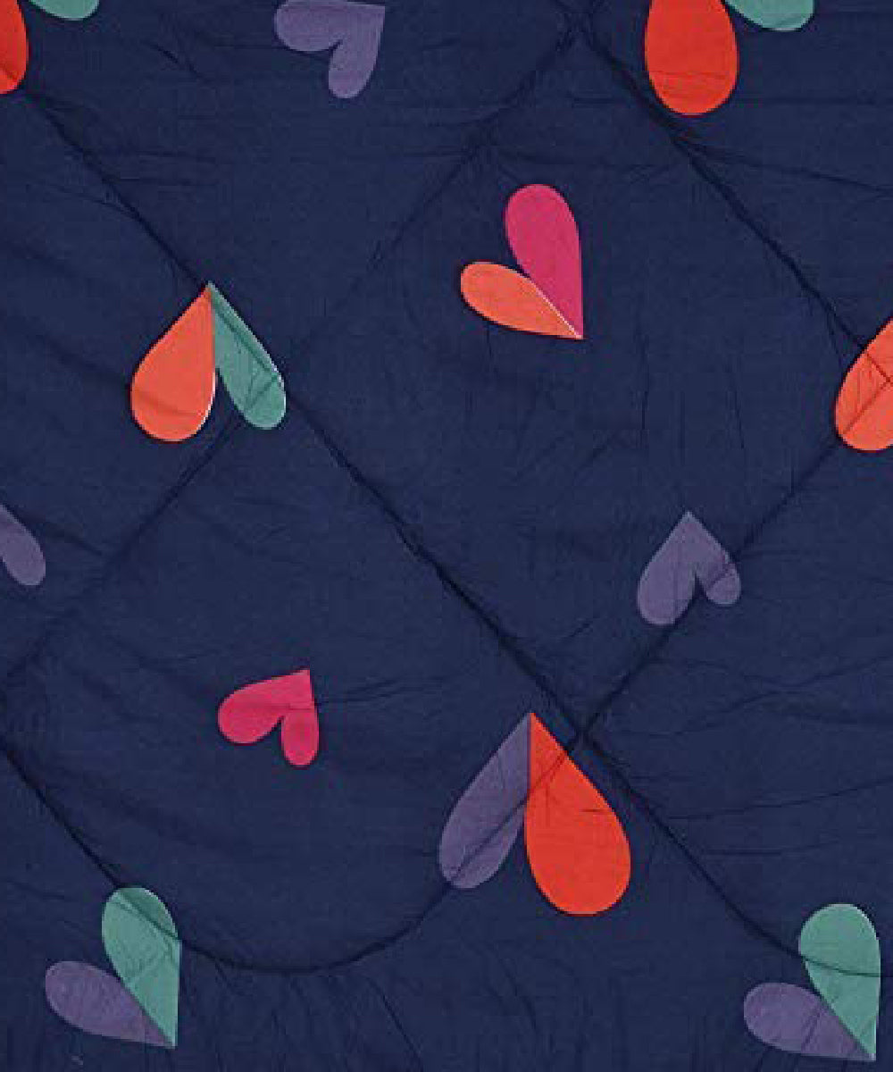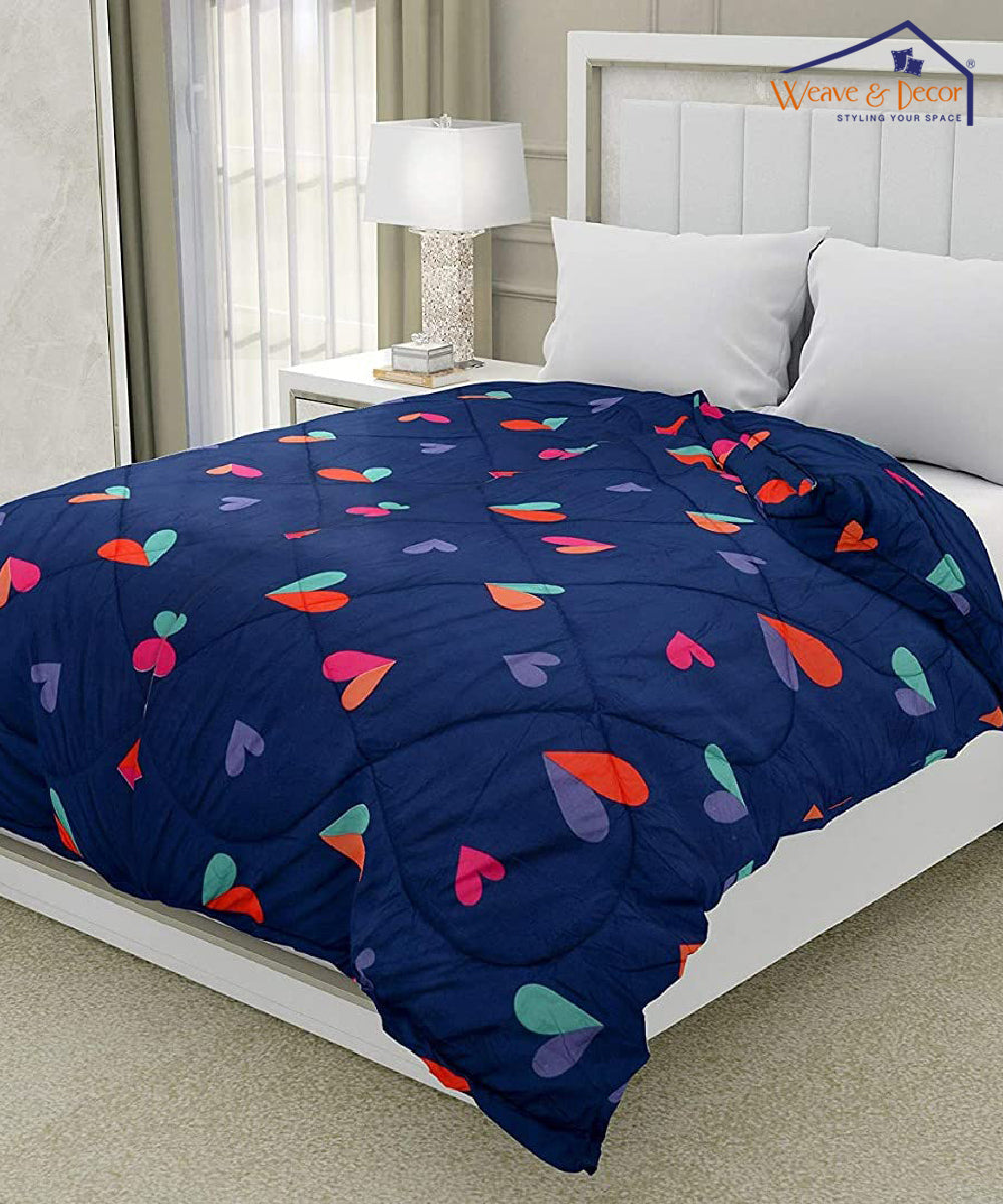 Feel the beat with Blue Hearts, an abstract comforter from Weave and Decor! Vibrant blue swirls on blend cotton dance with hearts, like a rhythmic wave, turning your bed into a lively stage of bold charm. Every pattern pulses with joyful energy, making sleep a thrilling ride.