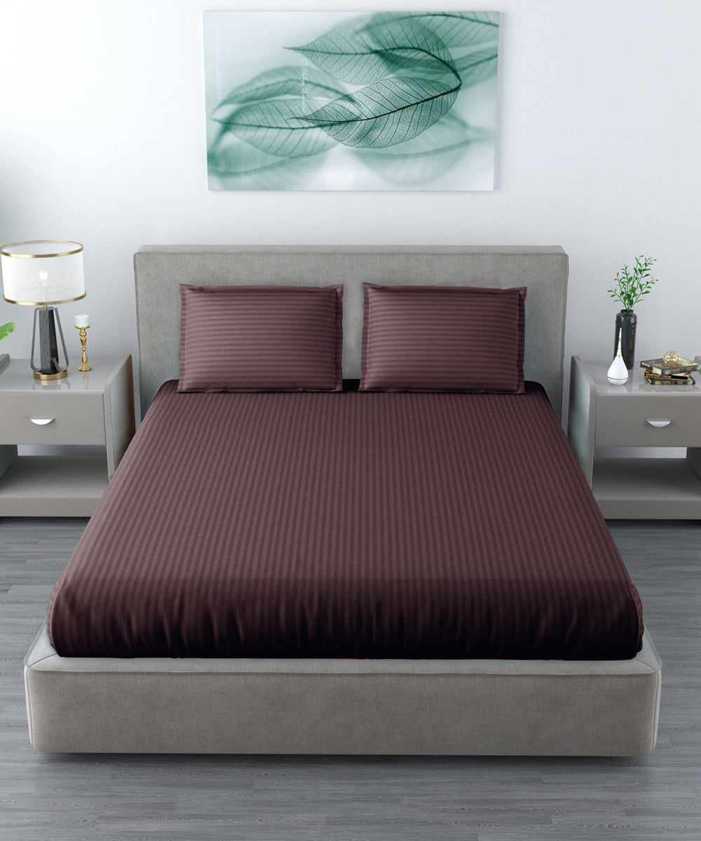 Brown Queen Fitted Bedsheet With 2 Pillow Covers