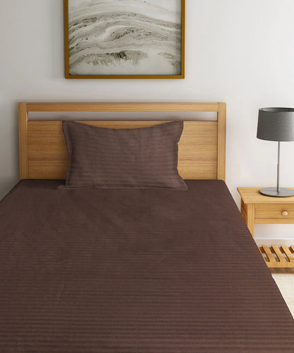 Brown Satin Stripe Single Bedsheet With 1 Pillow Cover
