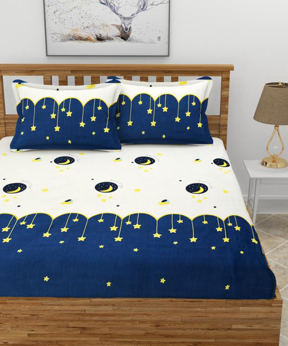 Shine into bedtime with our Celestial Charm Kids bedsheets, bursting with vibrant, cosmic designs! Glowing moon and twinkling stars dance through fun patterns, blending modern lunar and starry charm.
