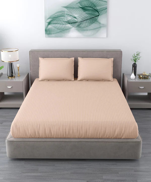 Cream Satin Stripe Bedsheet with Pillow Cover