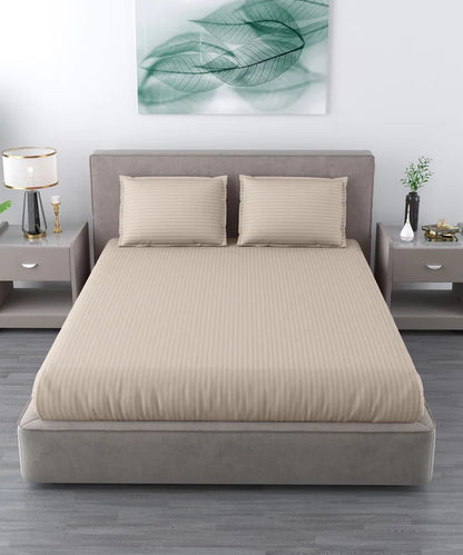 Beige Satin Stripe Bedsheet with Pillow Cover