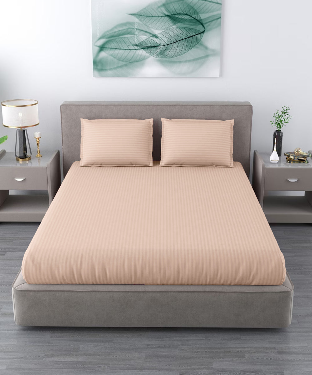 Cream Queen Fitted Bedsheet With 2 Pillow Covers