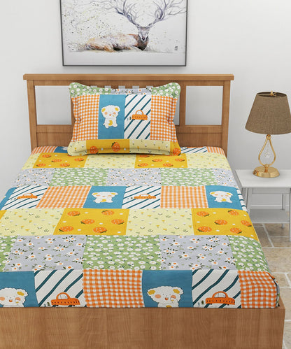 Cute Kids Single Fitted Bedsheet With 1 Pillow Cover