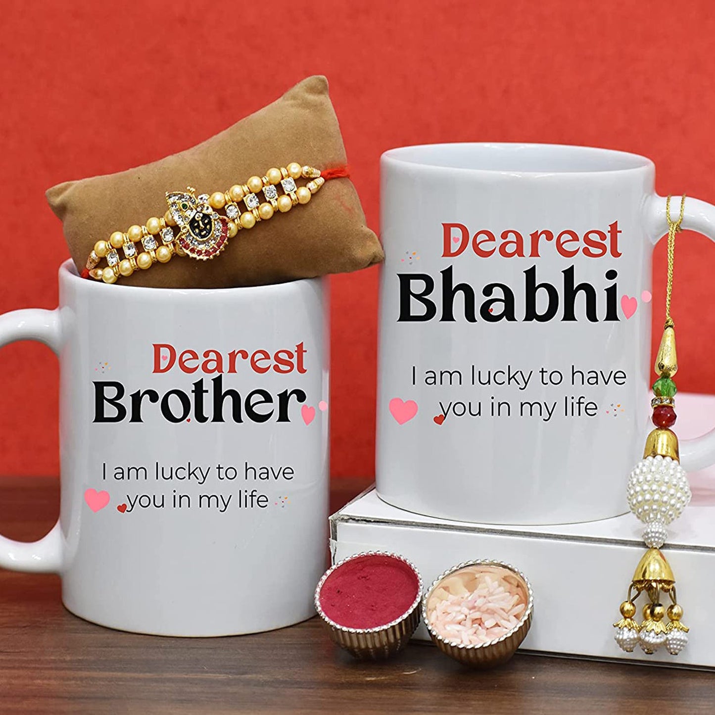 Dearest Brother & Bhabhi Mug Set with 2 Rakhi