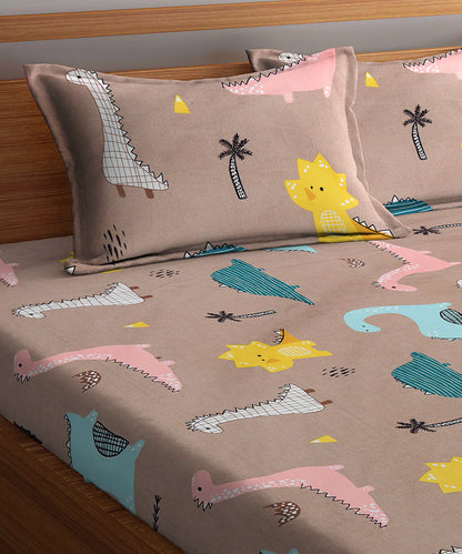 Dino Wonderland Queen Fitted Bedsheet With 2 Pillow Covers