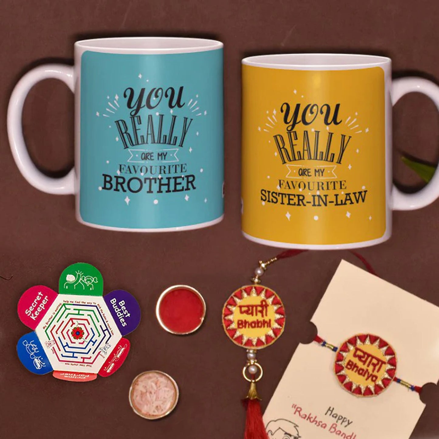 Favourite Brother & Sister-in-law Mug Set with 2 Rakhi