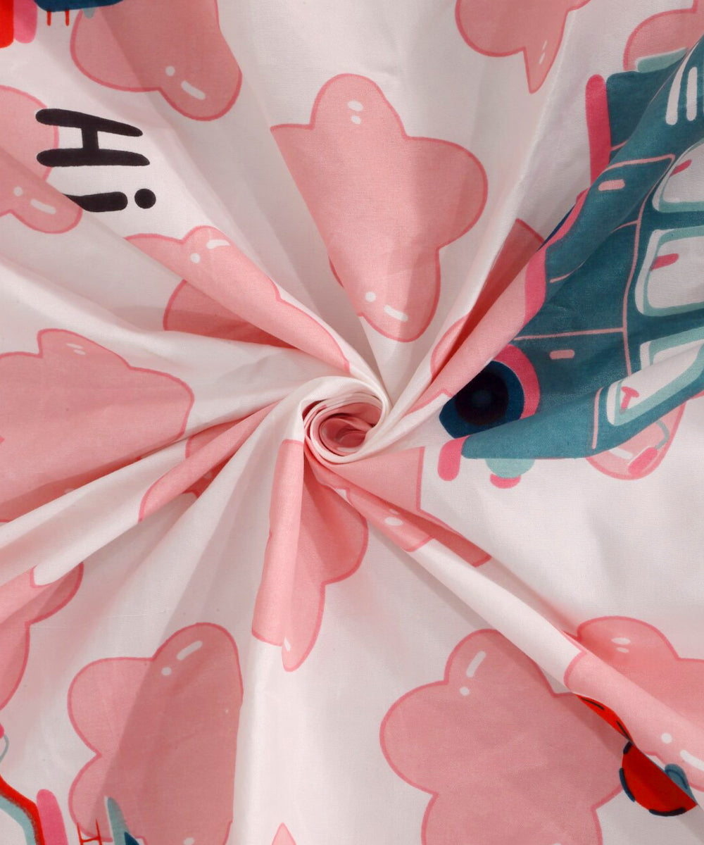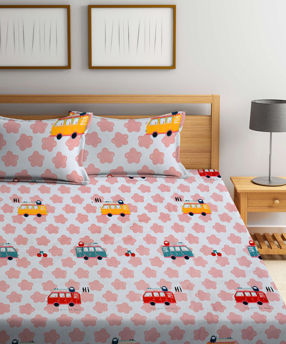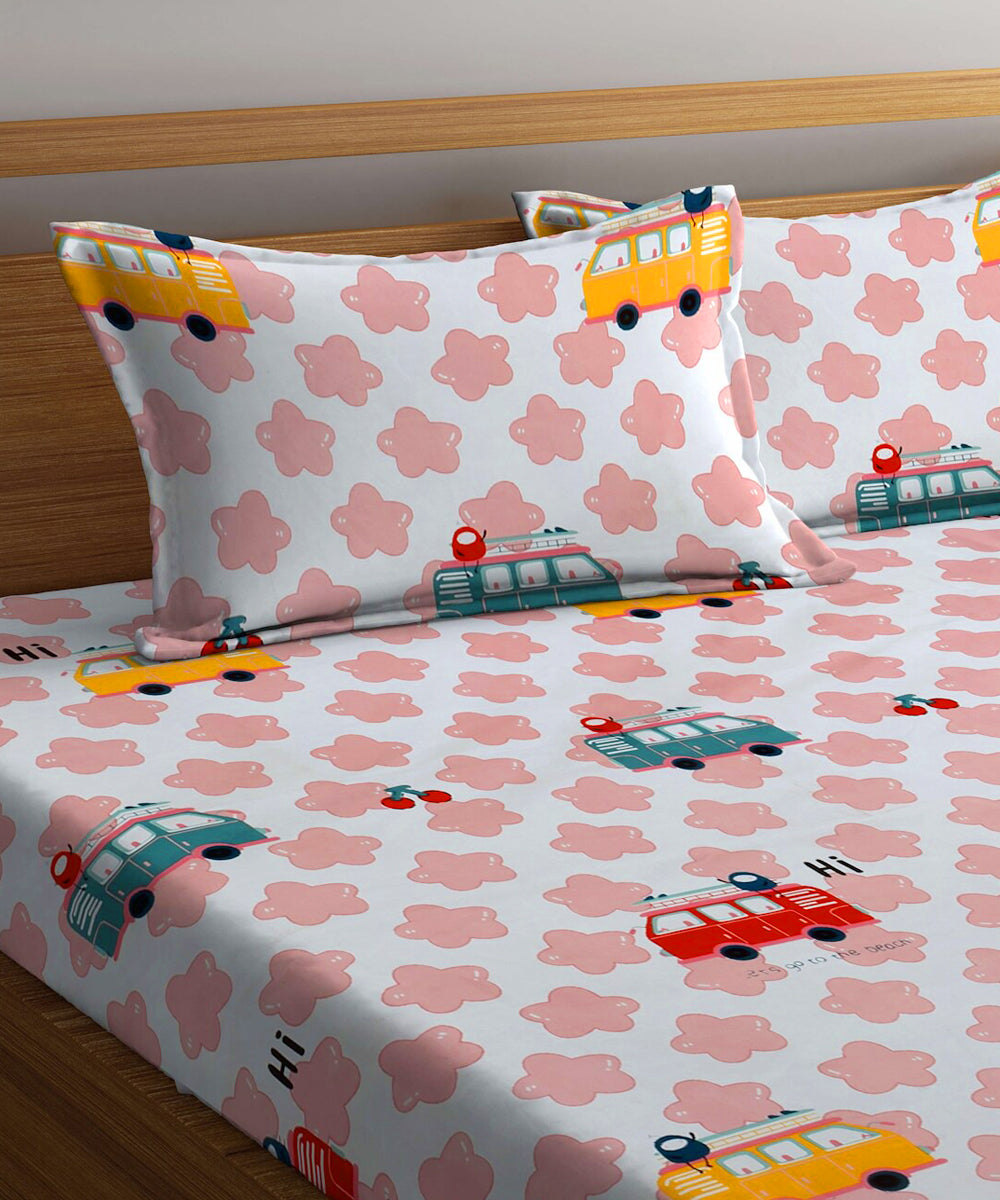 Red Bus King Fitted Bedsheet With 2 Pillow Covers
