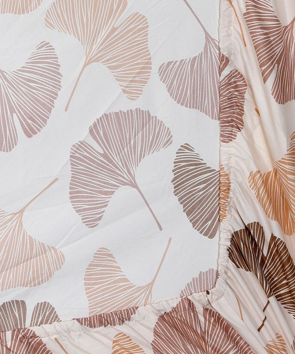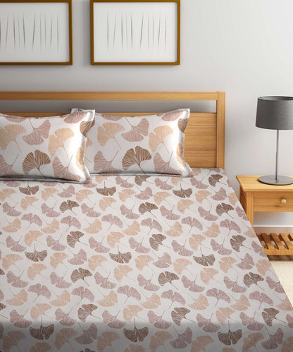 Off White Leaves Single Fitted Bedsheet With 1 Pillow Cover