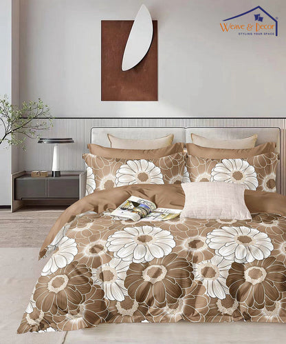 Brown Floral celebrates the beauty of neutral elegance with cream-white florals on a chocolate base. Its blooming motifs soften the structured layout, giving your bed a gentle, relaxed glow. Crafted by Weave & Decor, it’s an invitation to unwind in style.