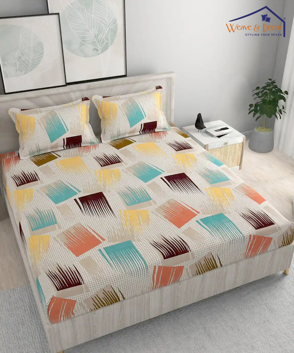 Multicolor Abstract Single Fitted Bedsheet With 1 Pillow Cover