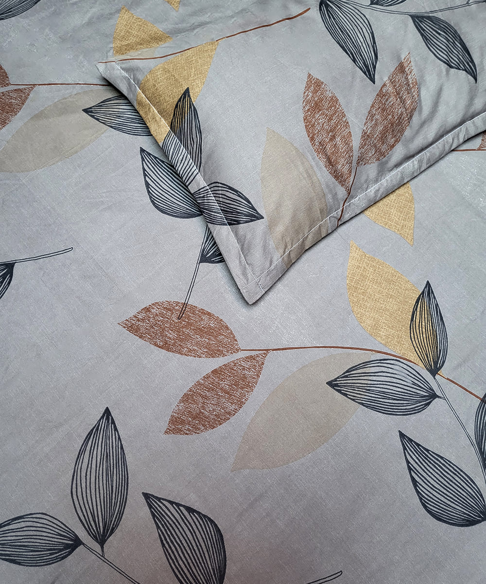 Calm grey hues and soft leaf illustrations make Autumn Leaves a refreshing and stylish pick for any bedroom. This Weave & Decor design feels like a quiet walk through a forest with golden sunlight peeking through trees. Every thread is thoughtfully woven to create an ambiance that’s cozy, balanced, and effortlessly elegant.