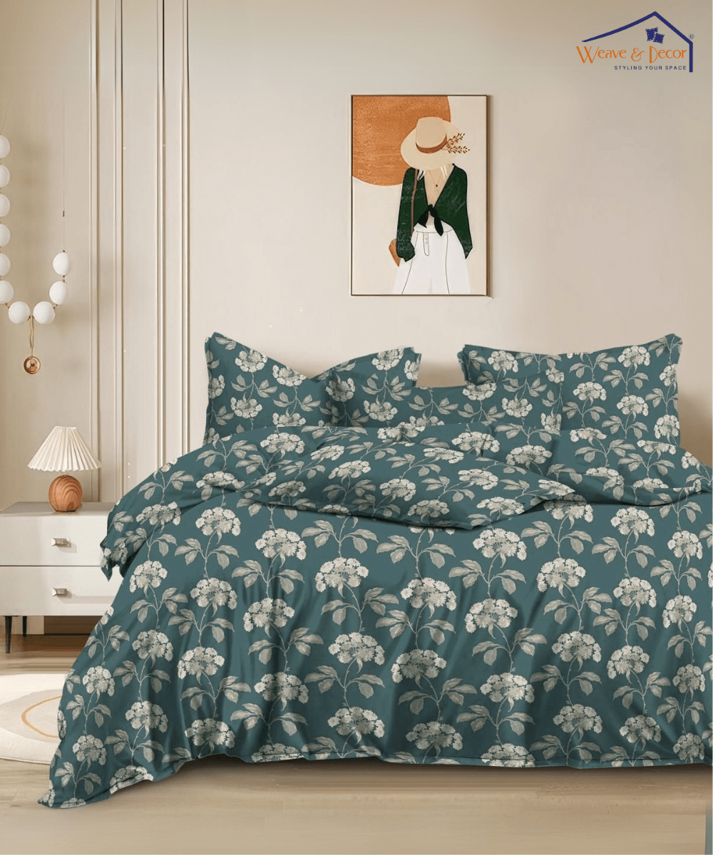 Bring home the charm of nature with Weave & Decor’s dark green floral. The deep, rich green base paired with delicate floral prints creates a bold yet soothing aesthetic. Crafted from soft, breathable cotton for comfort that lasts night after night.