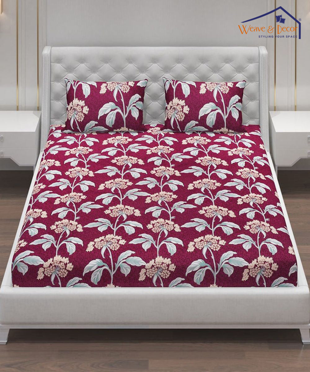 This elegant bedsheet features soft floral vines in pastel tones printed over a rich red base. The pattern brings a warm and welcoming feel to any bedroom, perfect for daily use or a festive touch. Crafted for comfort and designed to stand out, Floral House is a lovely addition to the collection from Weave & Decor.