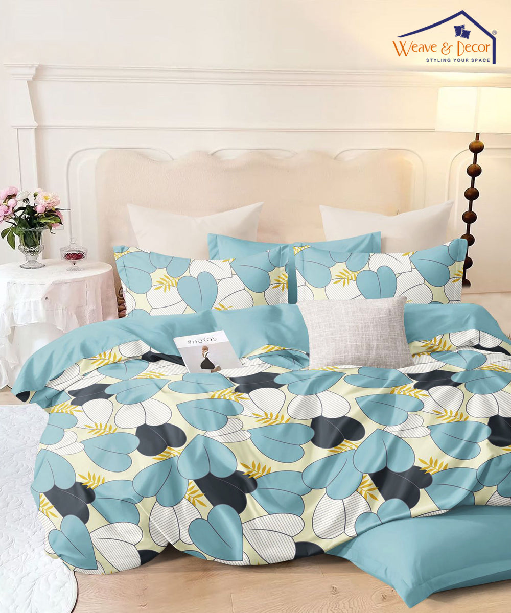 Weave & Decor reimagines modern botanical themes with Leaf on Leaf, a bedsheet filled with soft blue leaves. Layered foliage floats across a creamy backdrop, inviting calm and comfort in any room. A go-to choice for effortless, stylish, and relaxed interiors.