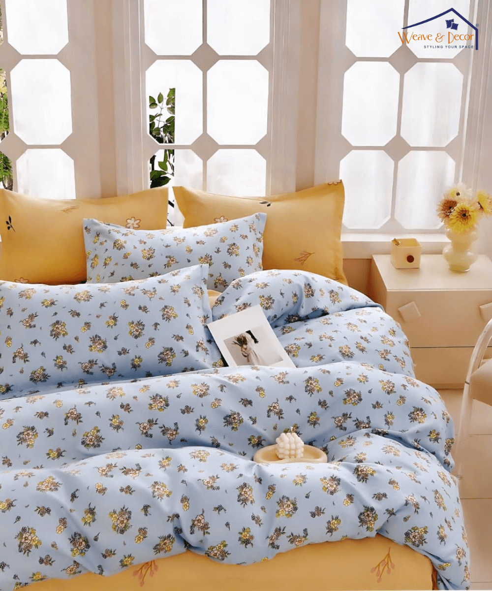 Daisy Sky Queen Fitted Bedsheet With 2 Pillow Covers