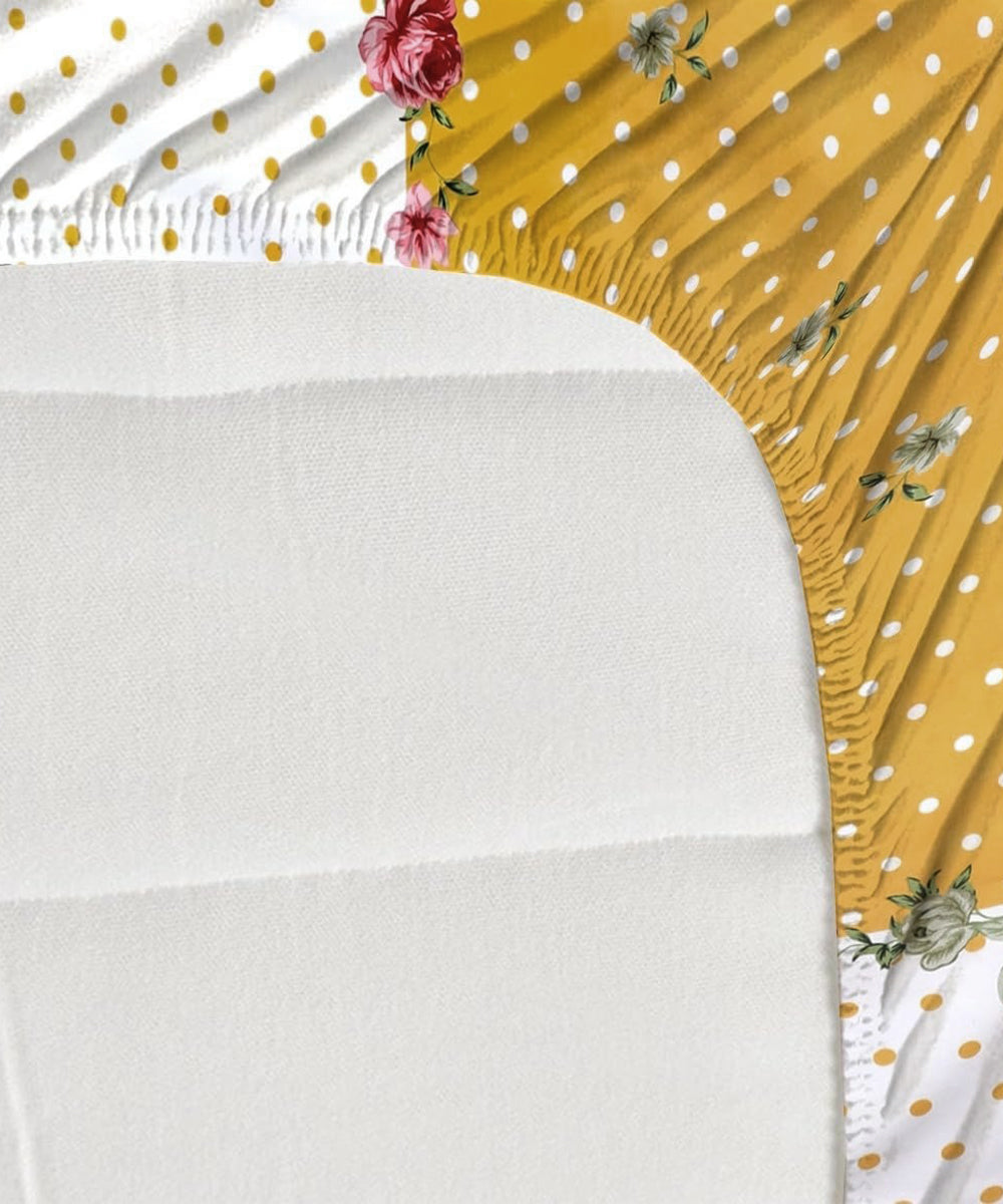 Mustard Floral King Fitted Bedsheet With 2 Pillow Covers
