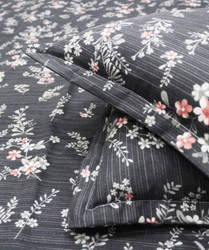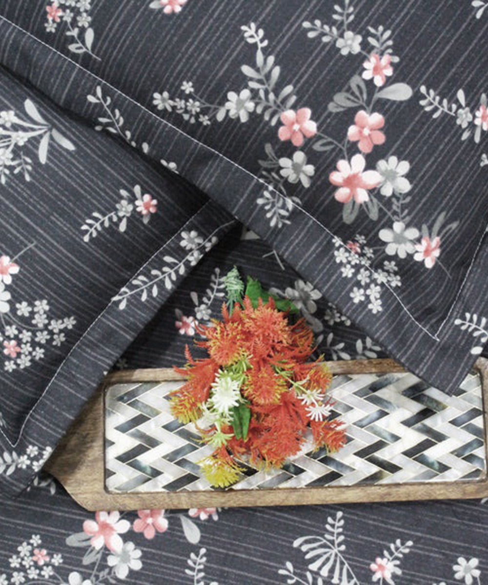 Charcoal Blossom King Fitted Bedsheet With 2 Pillow Covers