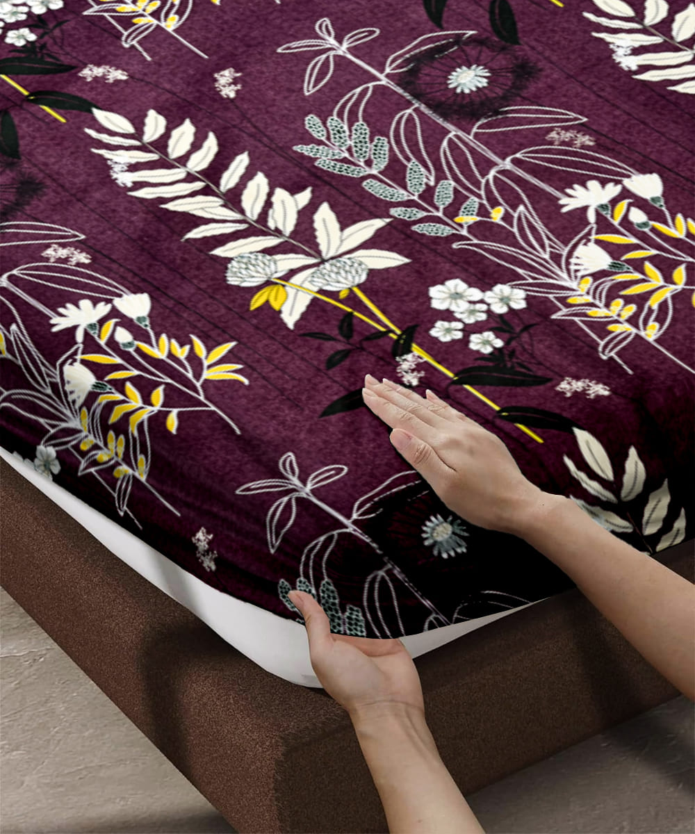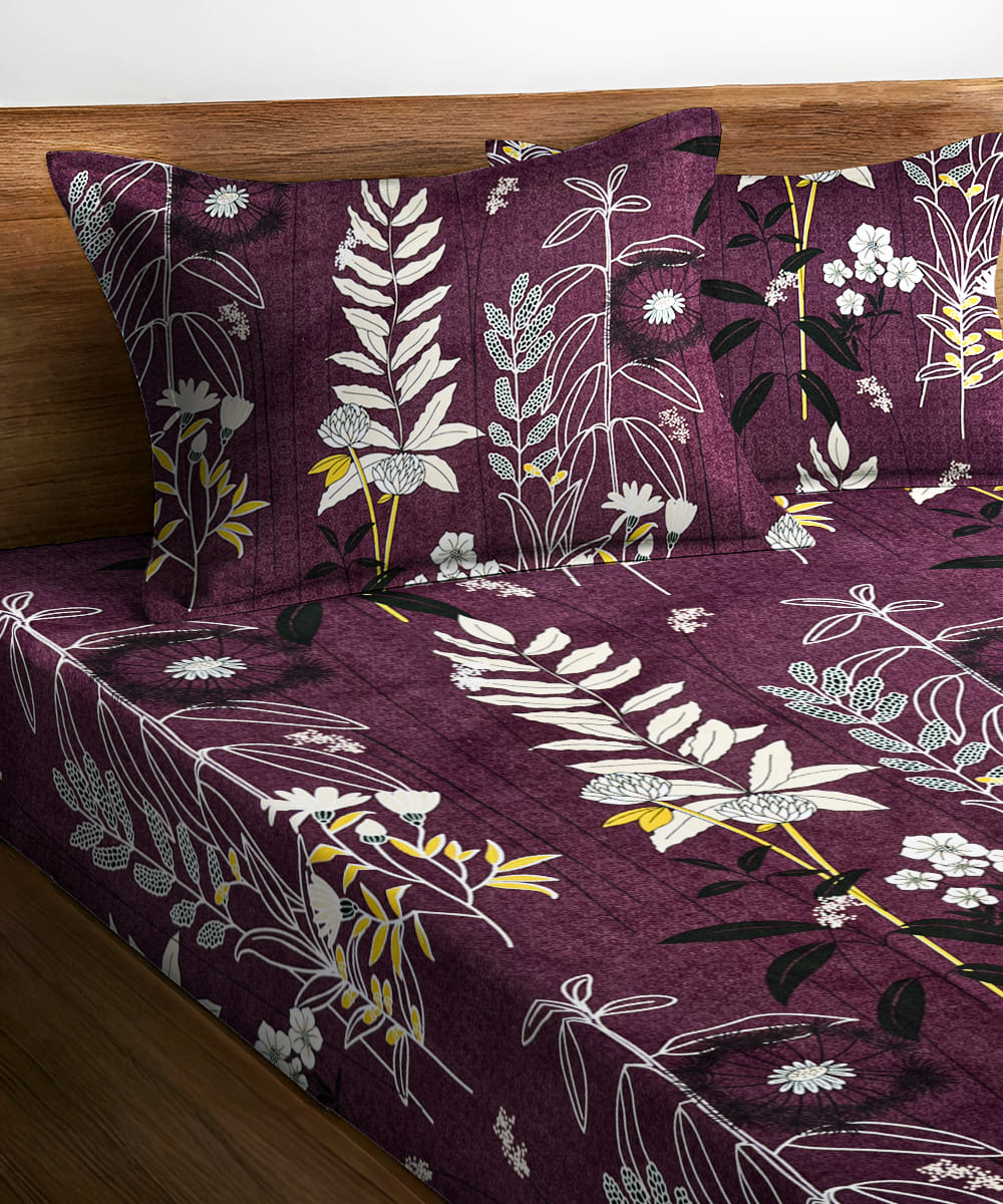 Twilight Flora King Fitted Bedsheet With 2 Pillow Covers
