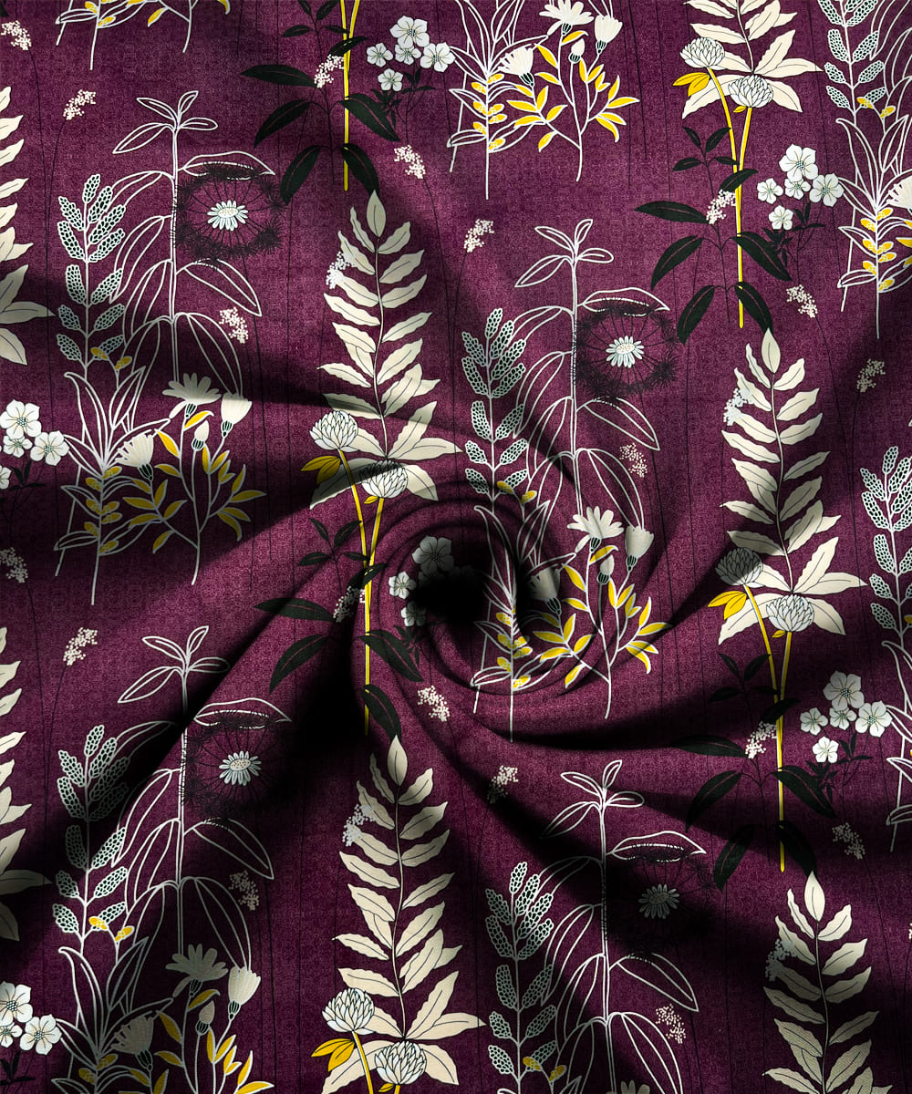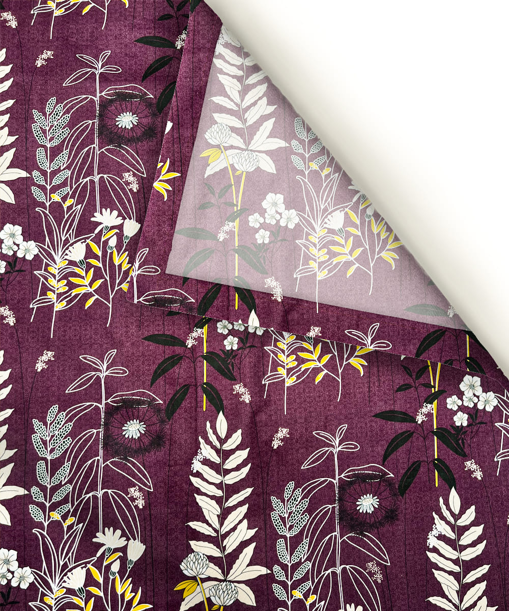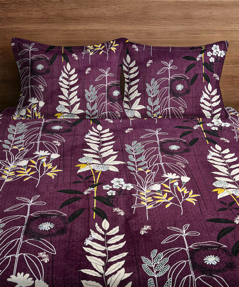 Twilight Flora by Weave & Decor blends lush leafy floral patterns with deep elegance. The rich purple canvas creates a luxurious base for intricate leaves and blooms. This bedding brings both freshness and warmth, transforming your bedroom into a serene retreat.