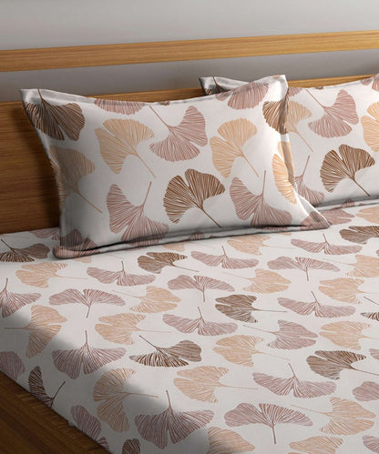 Off White Leaves Super King Fitted Bedsheet With 2 Pillow Covers