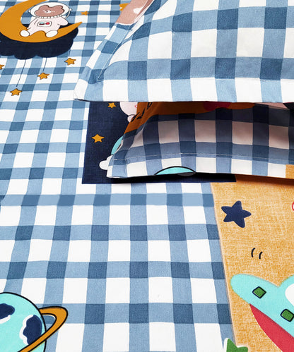 Galactic Bunny Kids Flat Double Bedsheet With 2 Pillow Cover