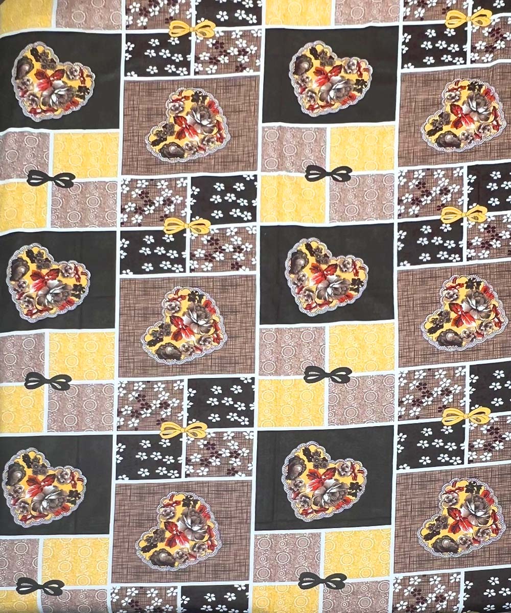 Add a warm and cozy charm to your bedroom with our Pure Cotton Bedsheet. Made from 100% pure cotton with a 200 GSM weave, it offers a soft, breathable touch and long-lasting comfort. The elegant heart and checkered pattern in golden brown tones brings a perfect blend of style and homely warmth to your space.